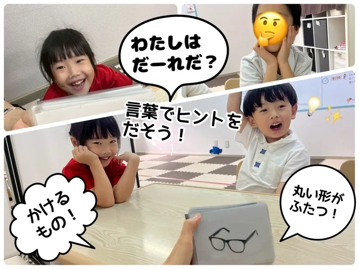時々「あっ!答え言っちゃった!」と笑い合う場面もありましたが、子どもたちはルールを守ろうと意識しながら、伝える力・聞く力を楽しく育んでいました😊