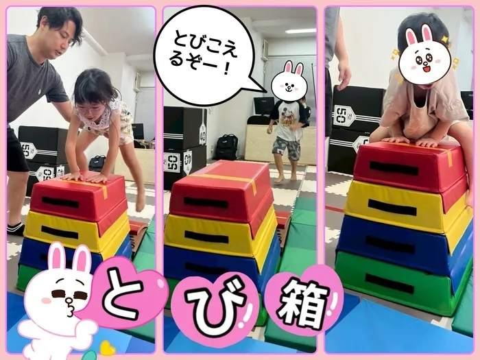 それでもよじ登ってジャンプすることができ、「同じ跳び箱を使えた!」と嬉しそうな表情が見られました😊