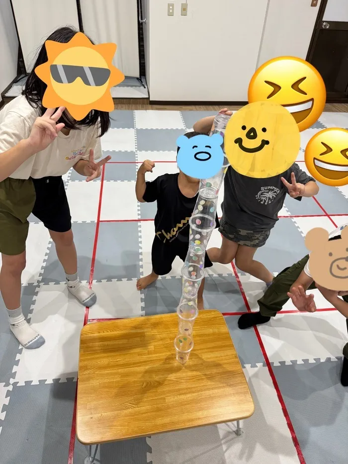 本日は余暇活動の時間に、「コップタワー」に挑戦しました🔥