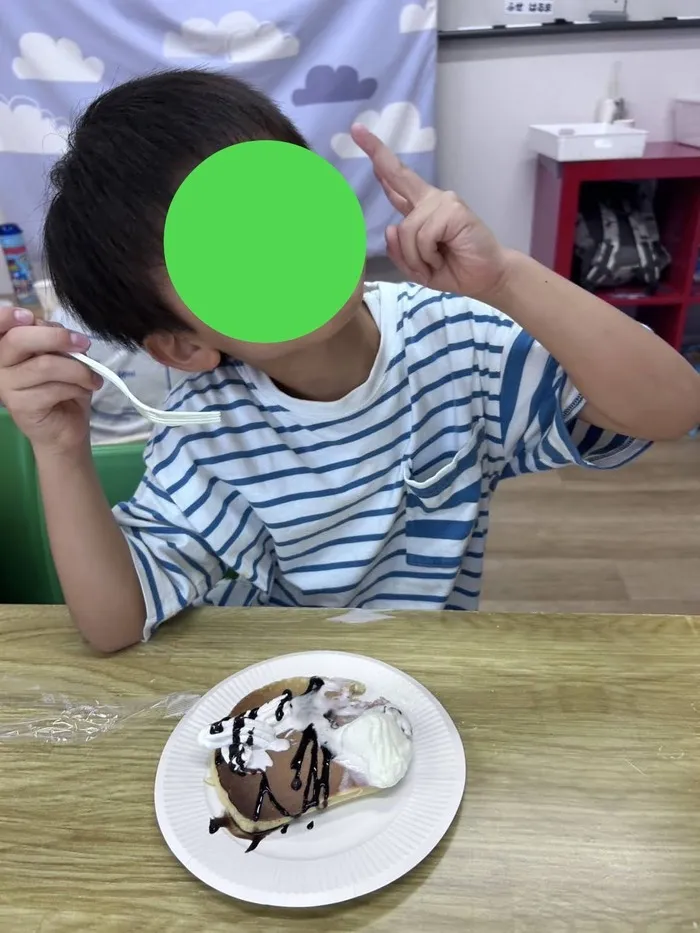 牛乳を入れたり、生地を混ぜてひっくり返すのを体験してもらいました。