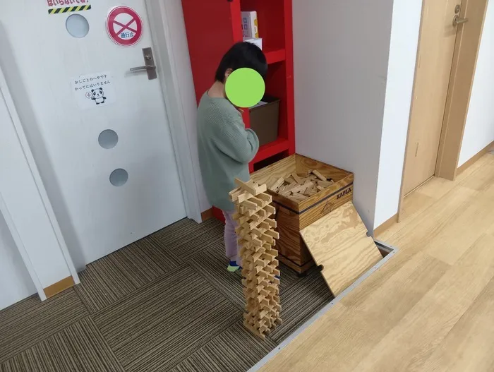 積み木を使用して、どこまで高く積めるか挑戦中💪