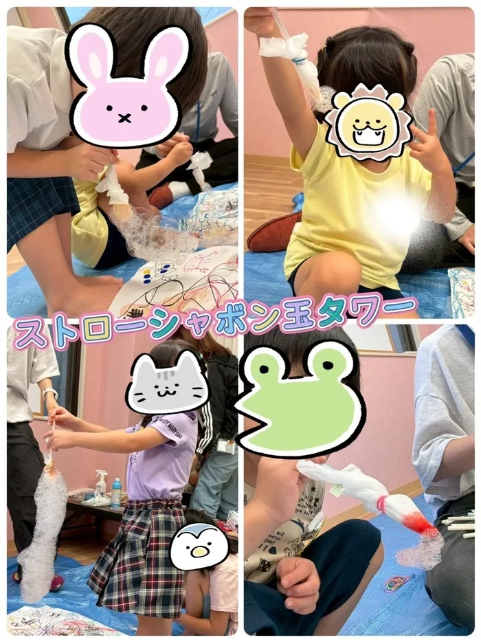 色とりどりの泡が重なり合ってタワーのように高く積みあがり、「もっとやりたい!」と夢中になる姿も見られました☺️💖