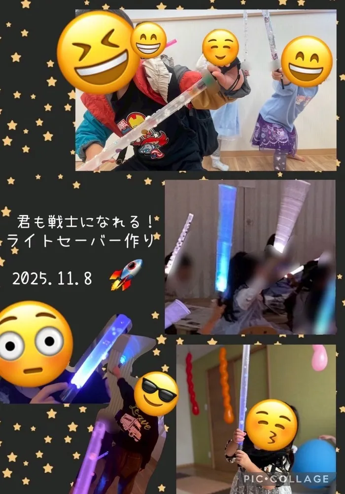 見本で作っていた職員のライトセーバーを見て開始前から「今日これ作るの?👀✨」「やったー♪」と目を輝かせていたお友達😆