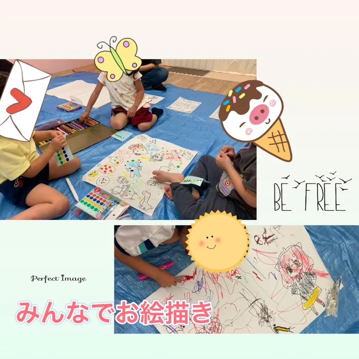 最後に完成した絵をみんなで眺め、「大きいね!」「いっぱい描けた!」と達成感いっぱいの表情を見せてくれました😊