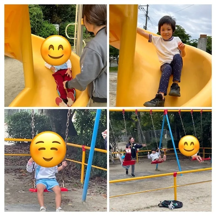 こんにちは、今日は秋晴れの気持ちいいお天気の中、みんなで近くの公園にお出かけしました🍂