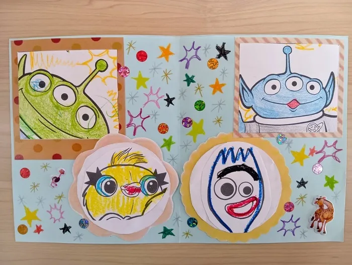 アルバムの台紙や写真の枠、貼付の位置、飾り付けなど、