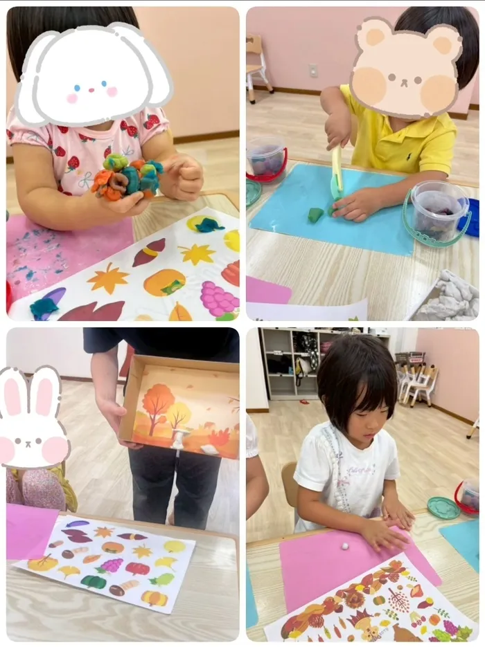 この日は秋の食べ物や動物などを粘土で作ろうという設定で行いました🍁
