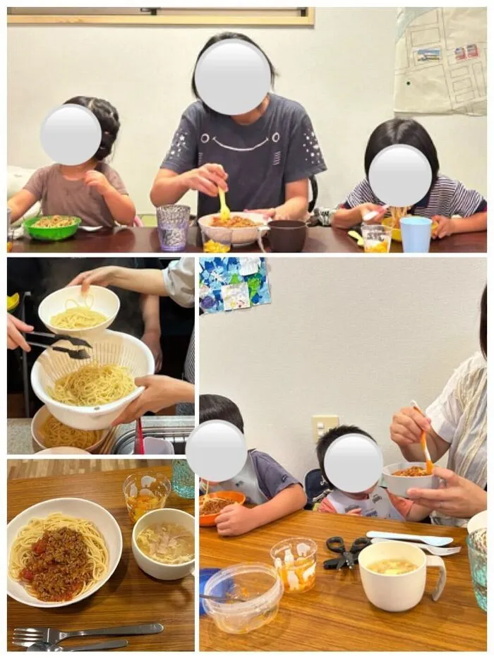 茹でたてのパスタの熱さに驚きながらも、たくさんのお手伝いをしてくれました♬