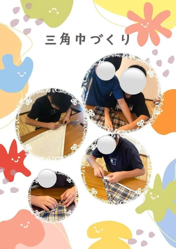 今回の集団活動では、「三角巾」を作りました!
