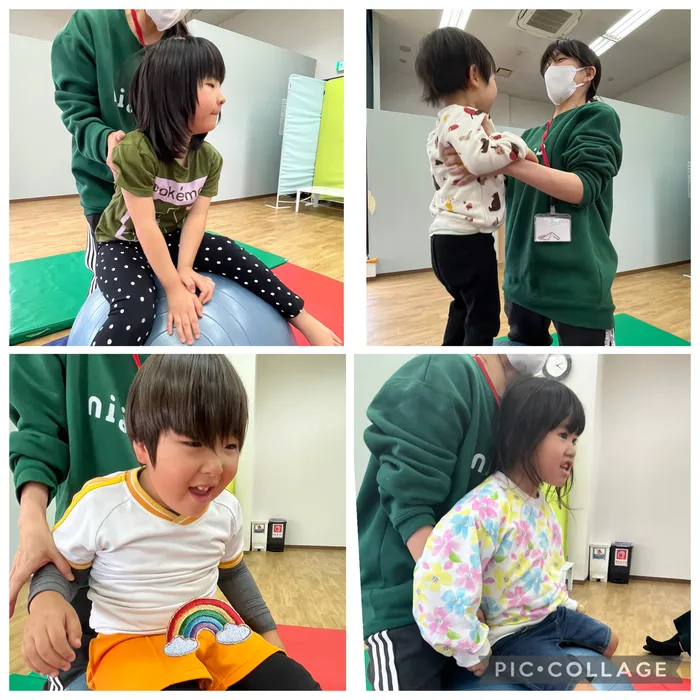 次は、バランスボールに立つことにチャレンジ✊「できるかな?」と少し不安そうにしながらも、10秒立てるととても嬉しそうな表情を見せていました🌟