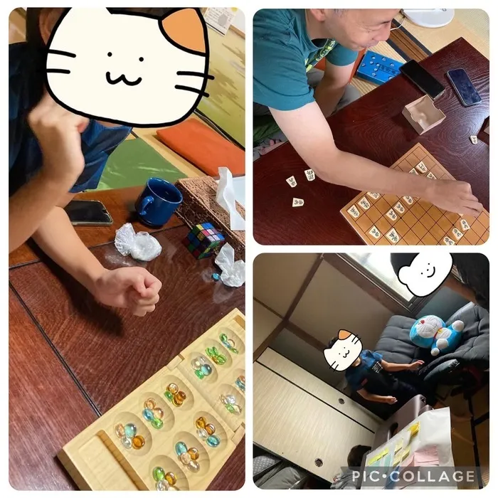 マンカラ、将棋、カードゲーム、かくれんぼ、Wiiでスポーツ、とわいわい過ごしていました。