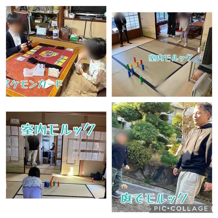 探究の時間は、今日は自然と子どもたちからやりたいことが湧いてきて、カードゲーム、モルックも二箇所で開催されていましたよ。スタッフも混ぜてもらい楽しみました😊