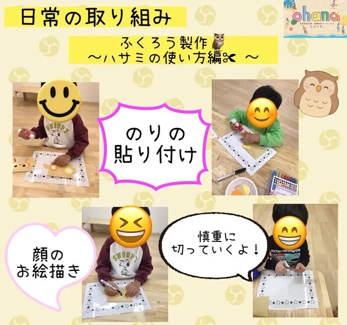 今回は、日常の中で行った製作『ふくろう作り🦉』の取り組みについてご紹介いたします😊