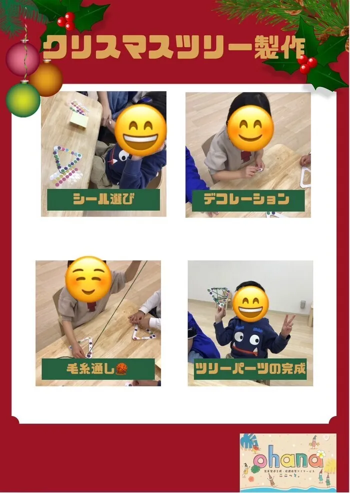 ここっと。ohanaでは、20日(土)と21日(日)にクリスマスイベントを開催するので、プレイルーム内もクリスマス仕様にするために、子どもたちと一緒に飾り付けを作っています⭐️