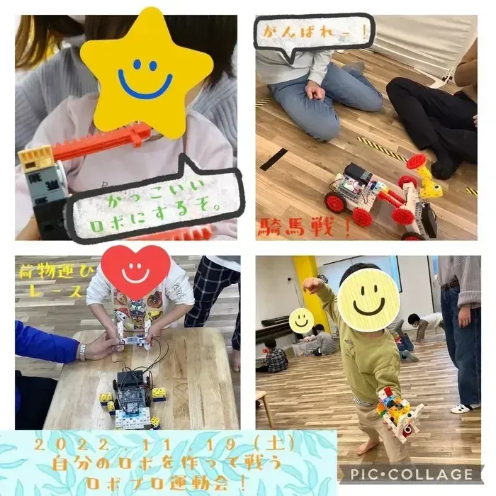 今回は、使用できるパーツを15個に制限し、限られたパーツの中でどうしたら相手の騎馬を効率よく倒せるかを試行錯誤できる内容にしたため、子どもたちから「こうしてみよう!」「こうしたら面白いよ!」が飛び交う創造的なイベントになりました🎉