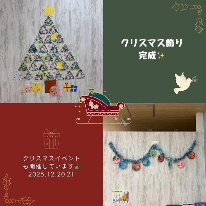 クリスマスツリーは、子どもたちがそれぞれ作ってくれていたピースを合わせて、1つの大きなツリーを作りました🎄