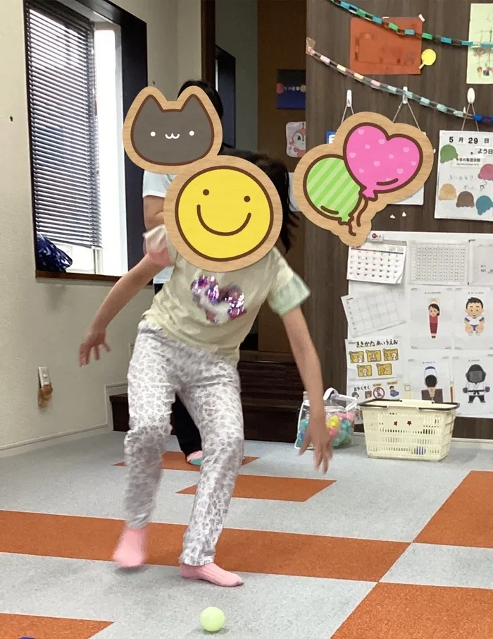 ボールを後ろ向きに転がして、カゴに入れるゲームを楽しみました!