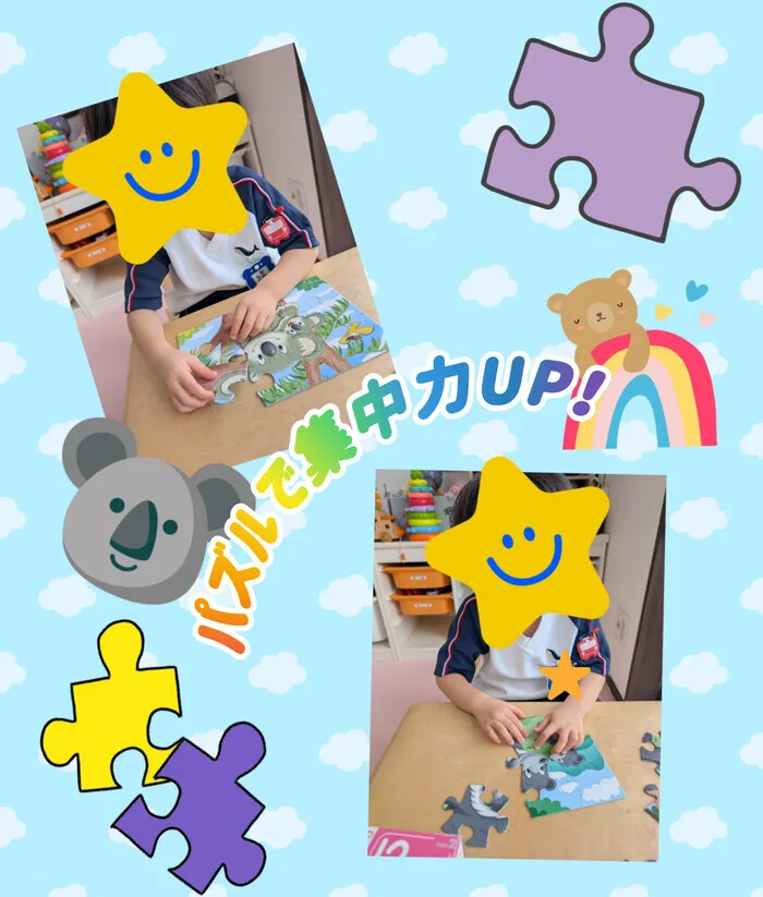 パズルは手指の巧緻動作・ビジョントレーニング・集中力・空間認知能力等に働きかけることが出来ます。完成したときの達成感もあるのでお家でも挑戦してみてはいかがでしょうか🤏🤌
