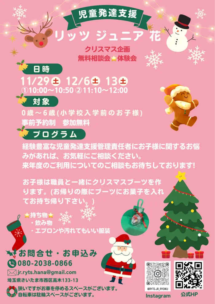 お子さまは職員と一緒に「クリスマスブーツ」を一緒に作りましょう!!