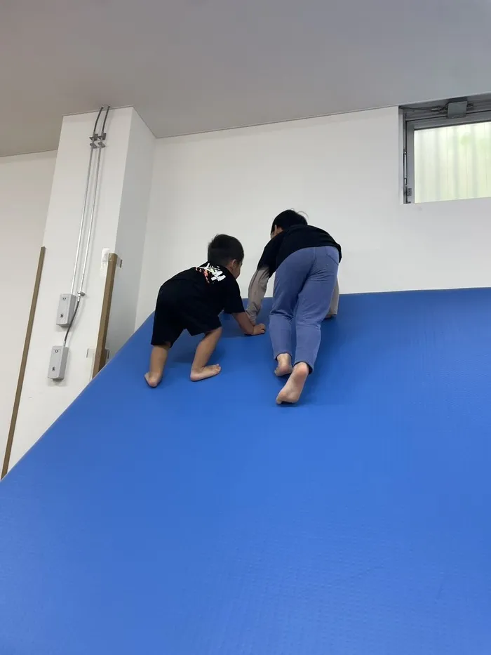 “のぼる動作”には、腕の力だけじゃなくて、体幹の安定や脚の踏み込み、そしてバランス感覚も必要です。運動療育でも大切にしている「全身を使った運動」のひとつで、日常生活でも自然に取り入れられます。