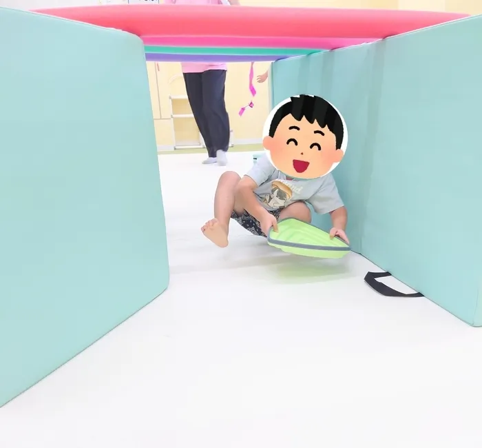 「運ぶ動作」を取り入れたサーキットに取り組んでいます。最初は運びながら進むことが難しかったA君でしたが、段々と持ち方を変えたり、姿勢を変えたりして上手に進むことができました!