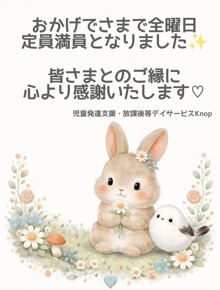 おかげさまで、全曜日定員が満員となりました♡