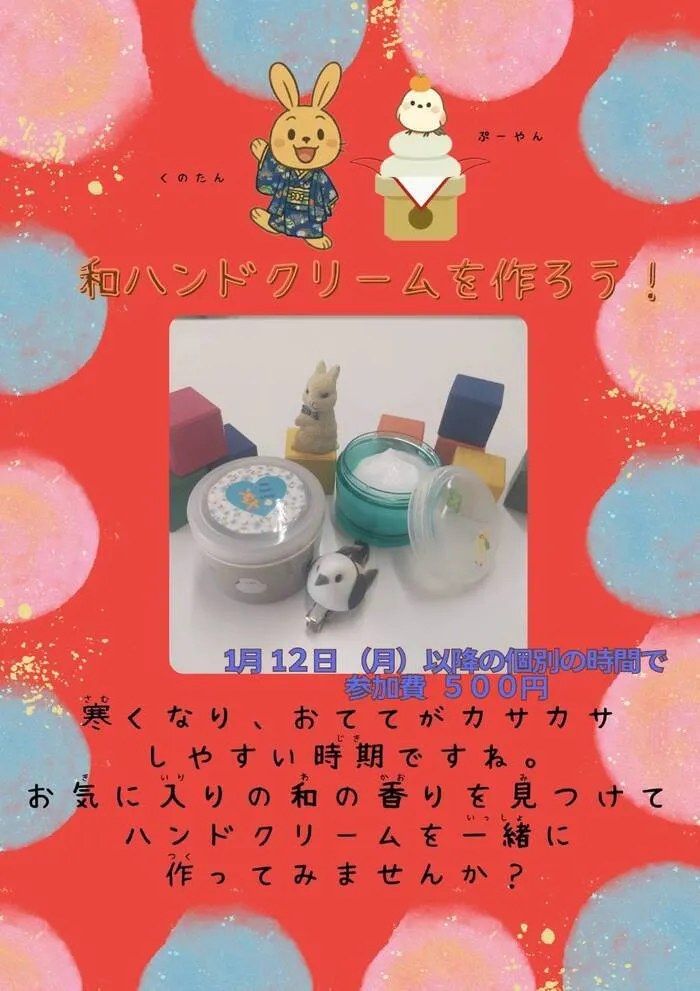 1月のイベントでは、和ハンドクリーム作りをします(^^)