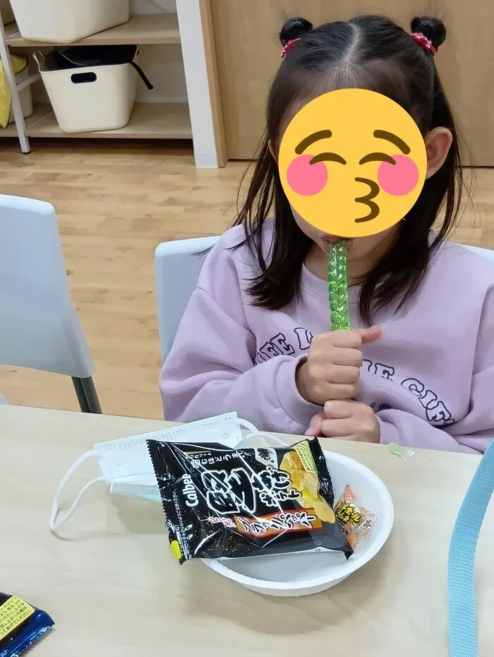 他にもいろんなおやつの種類を準備して一人100円分を選んで、計算もしています。