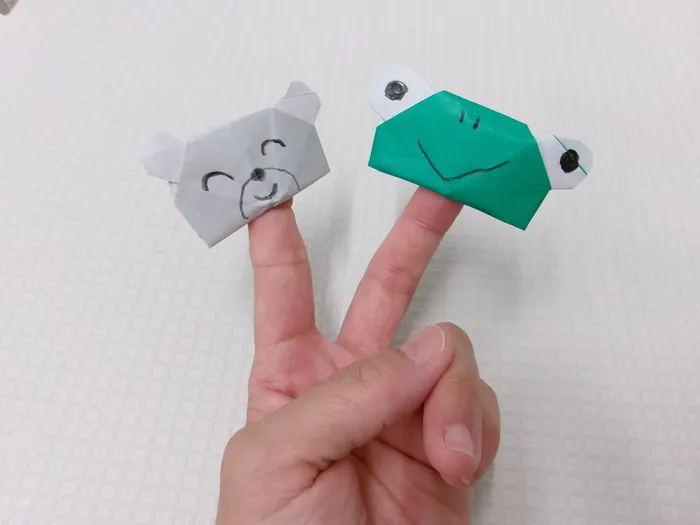 折り紙を折るだけでなく、絵を描き人形に表情をつけます。