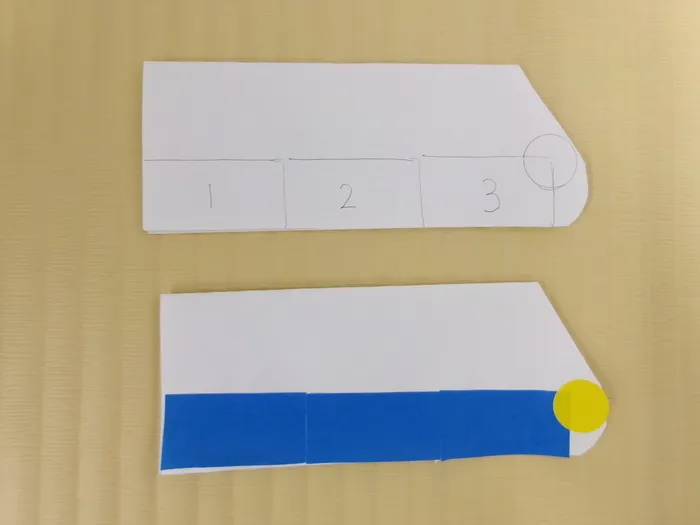 「1.2.3.」の数字に合わせて折り紙を貼付していきます。