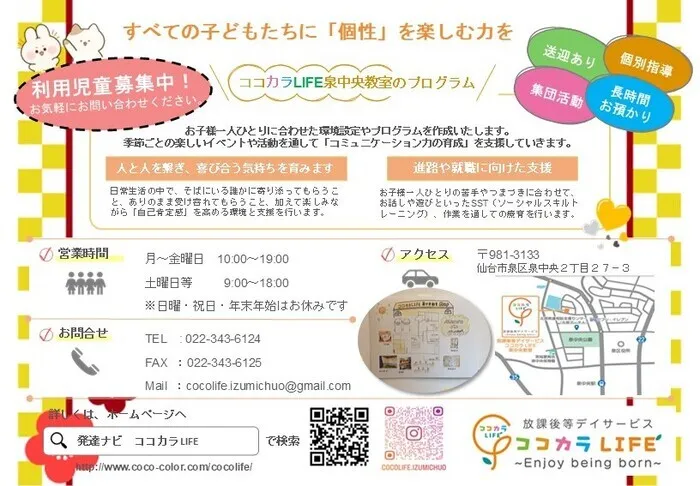 只今ココカラLIFE泉中央教室では来年度からの新規利用児童を募集しておリます🎵