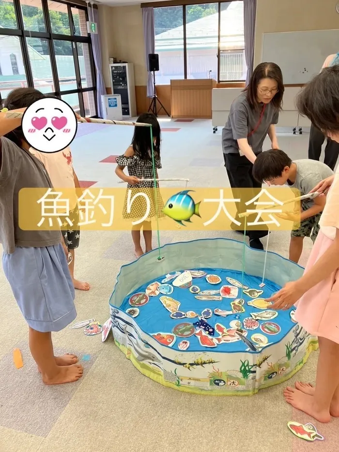 自分たちで描いたり絵を塗った海の生き物をもっていって