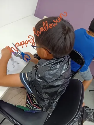 先日のAクラスの様子です。ハロウィンが近づいてきていることを子どもたちと話し合い来週のハロウィンイベントに向けてコスチューム作りを楽しみました。イラストをハサミを使って飾り付けをしてそれぞれ個性のあるマントや、ハットが仕上がってます。