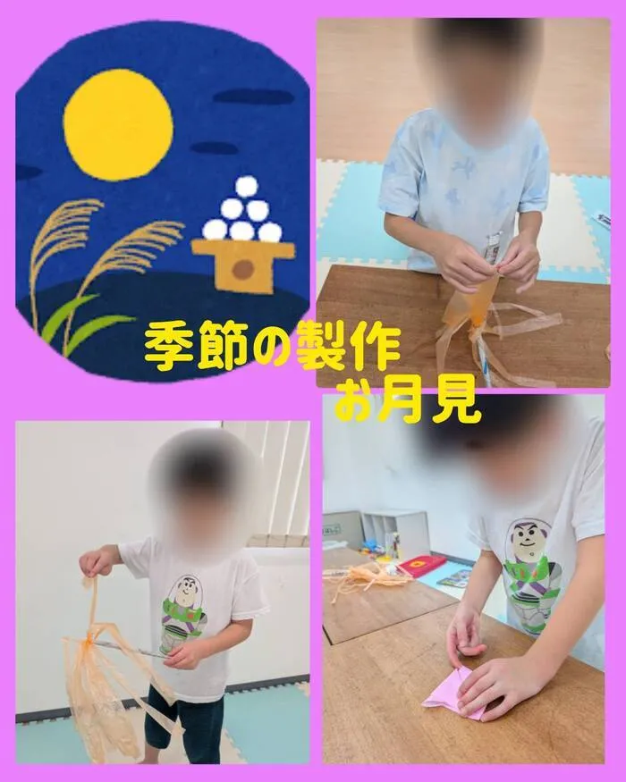 ススキやお月様、うさぎなどをこどもたちみんなで分担して作りました😊