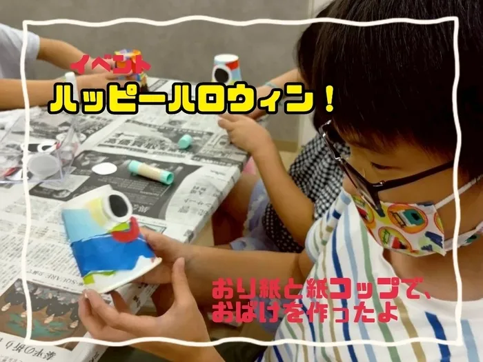 先日のイベントは、もうすぐハロウィンの日ということで、おりがみと紙コップで、おばけ〜を作りました👻