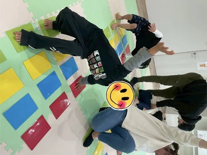 右手ってどっちだっけ?次は左足をどの色に〜?!と、苦戦しながらも楽しんで参加する子どもたちです😊