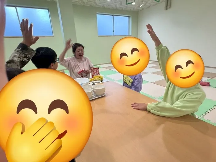 牛乳を入れて、バナナを切って…自分たちで作るおやつは特別😋楽しかった〜!おいしかった〜!みんな大満足のイベントとなりました♪