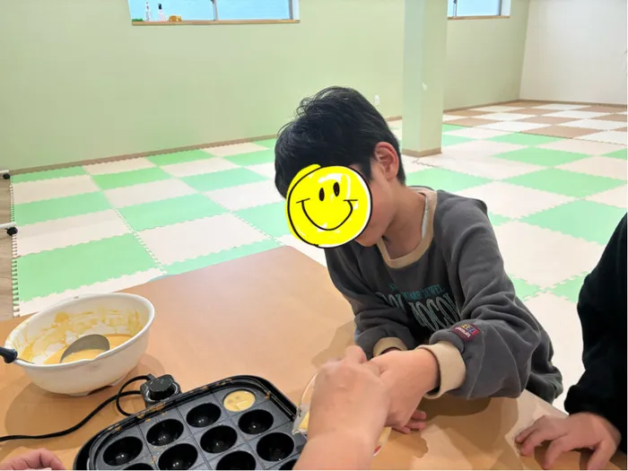 たこ焼き器の中にホットケーキミックスを流し入れて♪