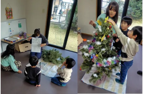 今日は放課後等デイサービス「あそび星」で、クリスマスリースの飾りつけを行いました!