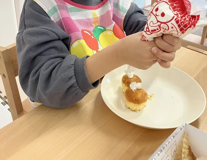 クリームをヌリヌリしたり、デコレーションとしてチョコレート菓子をトッピング🧁