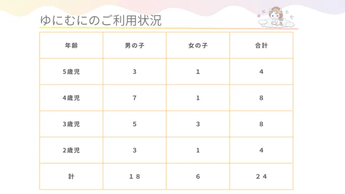 現在、ゆにむには24名のお子さんが通ってくれています☺️