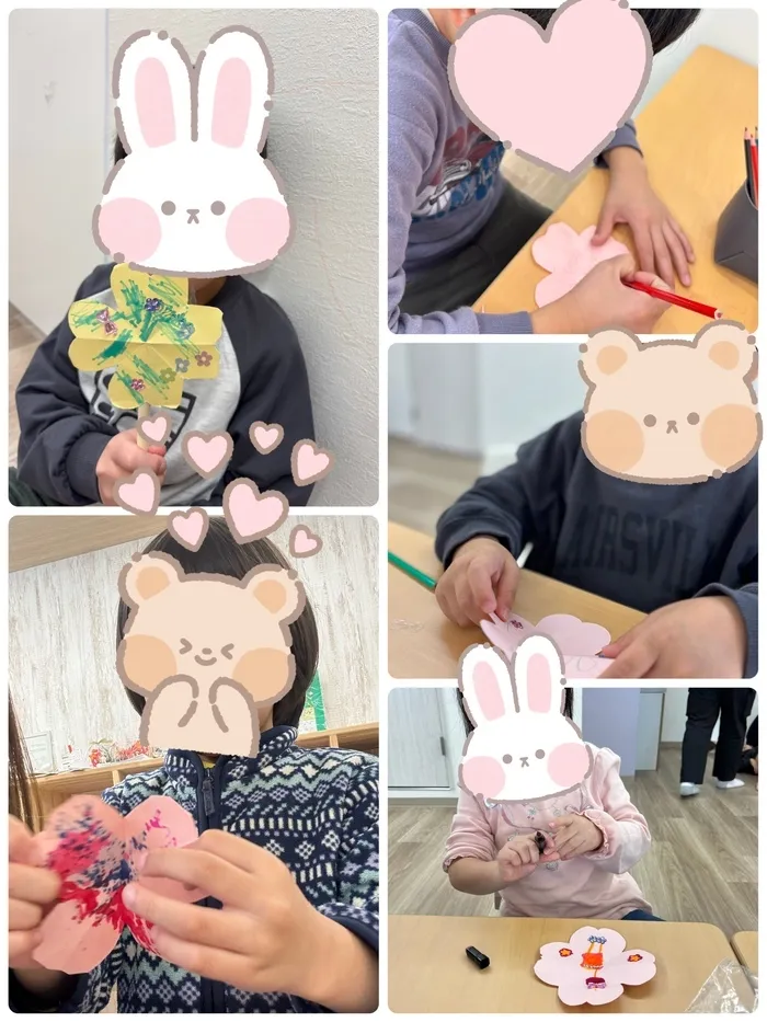 画用紙を切ってお花のような形にして中にメッセージを書きましたよ!