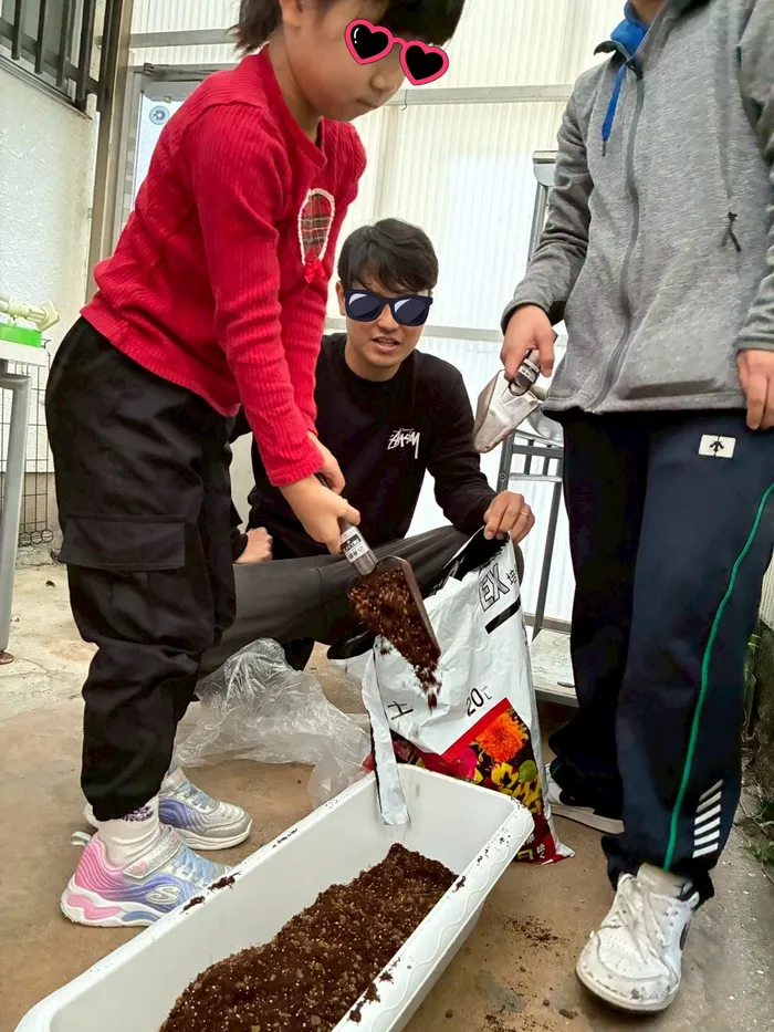 みんなで優しく土をほぐし、「ここに植えるよね?」と相談しながら準備を進めてくれました🪴