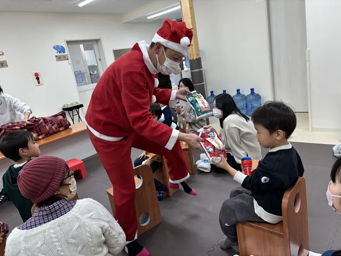 クリスマス会の後半には、教室にサンタさんが登場しました。