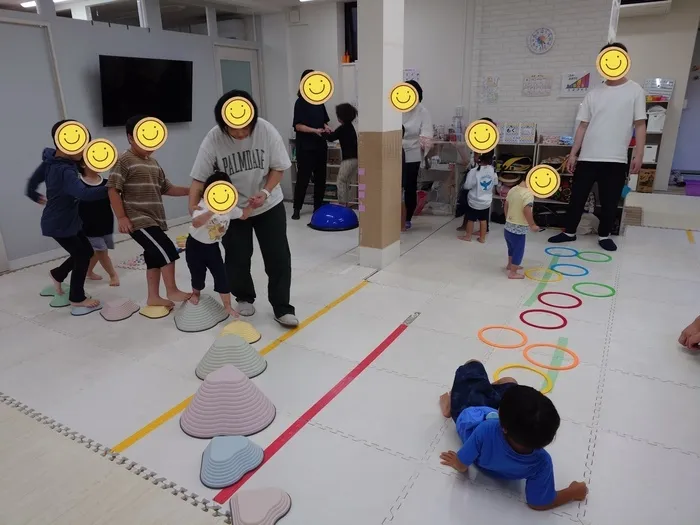 バランスストーンやセンサリーマットは小さい子も大好き❤
