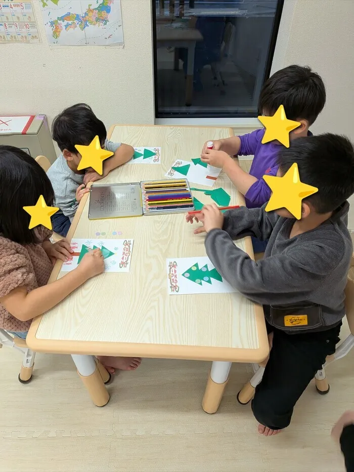 小学生のお友だちは、ツリーに白えんぴつで雪の模様を描いたりと上級者です👍
