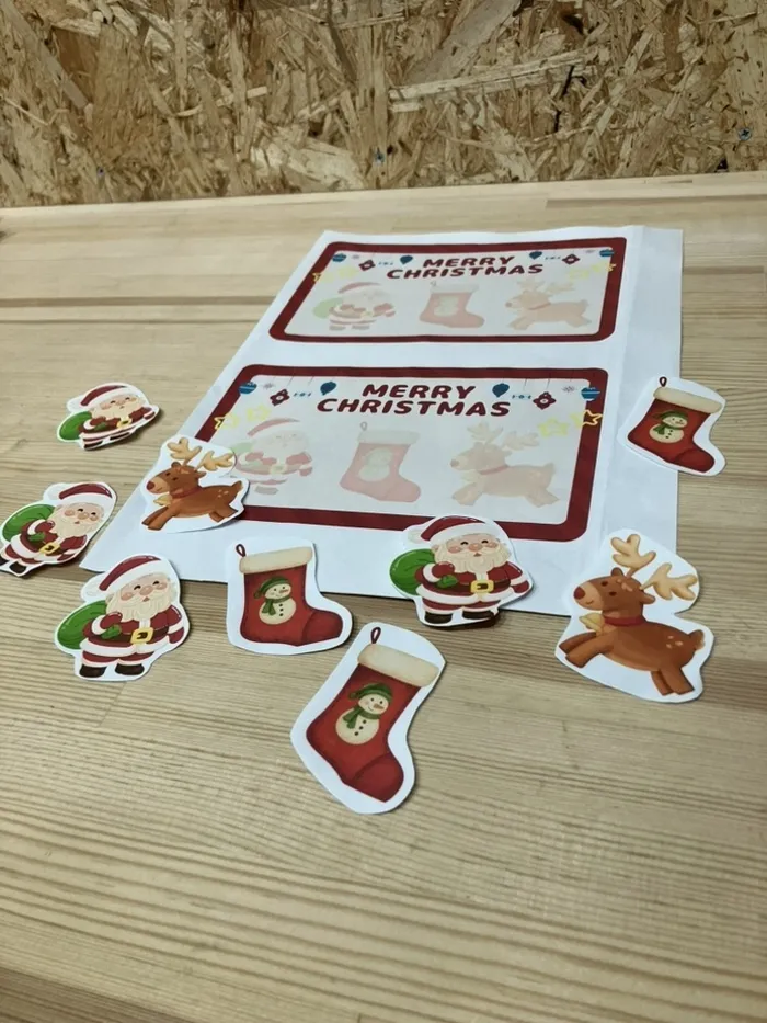 児発のお子さん向けのクリスマスカードにサンタ・トナカイ・靴下を