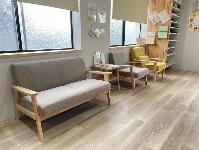お子さんが支援を頑張っている間、保護者の方々はこちらの待合でゆっくりと過ごすことができます!落ちついて過ごせる空間となっています!