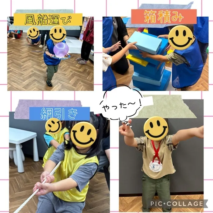 風船運びでは、風船を落とさないように注意しながら運んで、次のお友達にバトンタッチしました🎈