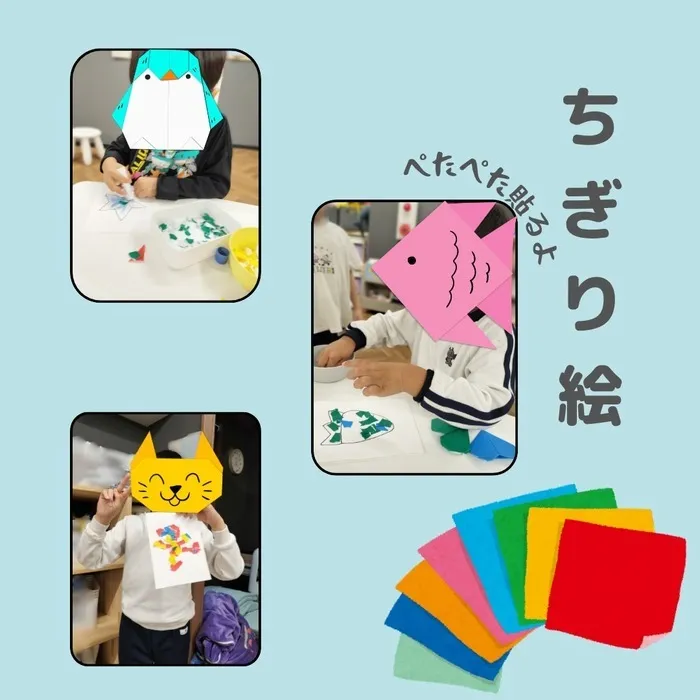 得意な子は自ら下書きを用意したり、いろんな大きさで折り紙をちぎったりと沢山の個性が溢れていました☺